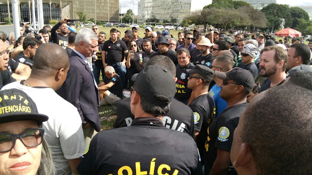 Um grupo com cerca de 100 agentes penitenciários de vários estados brasileiros se reúnem nesta manhã de terça-feira (2/5) em frente ao Congresso Nacional, em Brasília, para atos contra a reforma da Previdência. Segundo a Polícia Militar do Distrito Fedral (PMDF), o grupo informou a intenção de montar acampamento no local, mesmo sem autorização da Administração de Brasília. Não foram registradas ocorrência no local e o ato é pacífico.