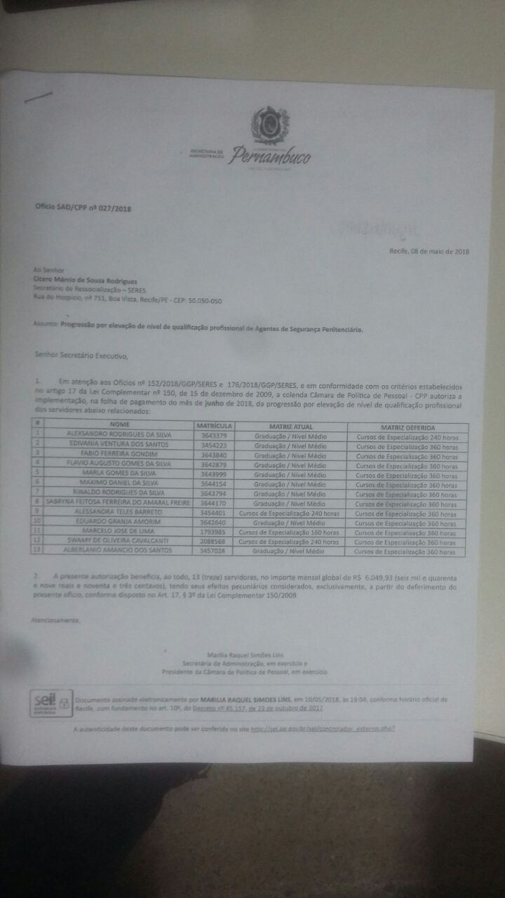 A Lista contém servidores que foram avaliados pela Comissão Paritária, onde o Sindicato faz parte. A SAD analisou, deferiu e a GGP/SERES está fazendo a implantação.