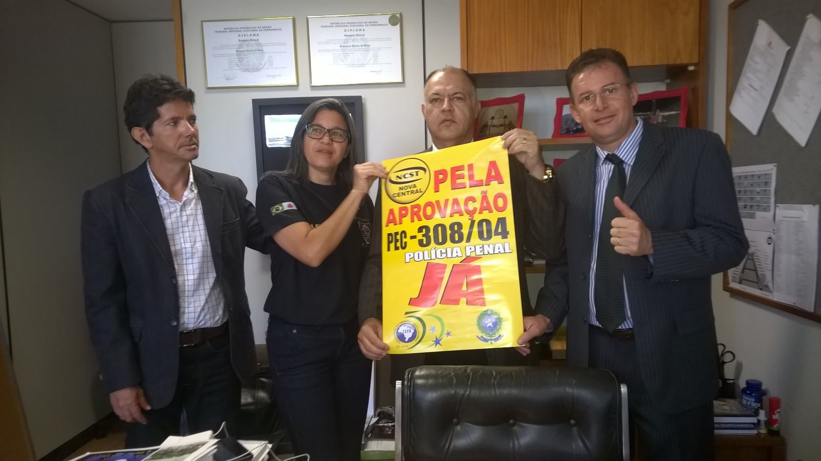 Representantes da Fenaspen, inclusive com representantes de Pernambuco estiveram em Brasília conjuntamente com outros membros da Federação de outros Estados estão estrategicamente pressionando todas as semanas para que seja votada a PEC 308. A primeira da luta da FENASPEN foi ser colocada a PEC 308 em pauta e na ordem do Dia e agora está sendo pressionado para ser votada. Informamos que a PEC 308 pode ser votada a qualquer momento e por ter sido colocada em pauta na ordem do dia terá que ser votada. Outrossim, existe o compromisso dos líderes dos partidos de ser colocada em votação a qualquer momento.