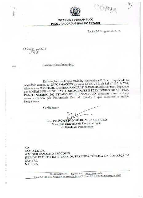Demonstrando a verdade, apresentamos a documentação da Procuradoria Geral do Estado.