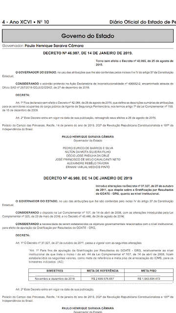 DECRETO Nº 46.987, DE 14 DE JANEIRO DE 2019.