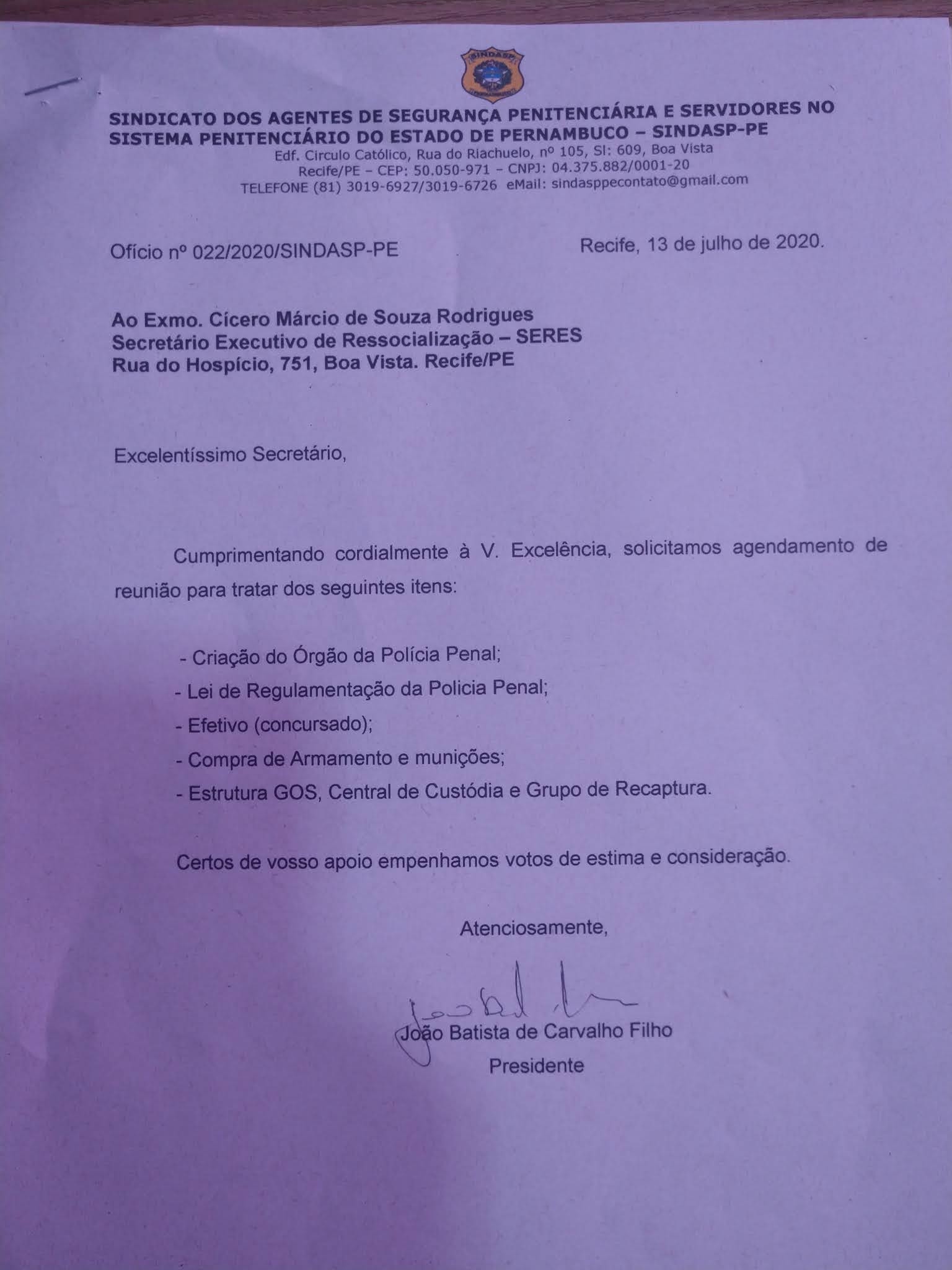 Estivemos reunidos com o Secretário Executivo de Ressocialização, Dr. Cícero Márcio para informar e cobrar a agilização da discussão para o encaminhamento da Minuta da Polícia Penal a Secretaria de Justiça e Direitos Humanos-SJDH, e posteriormente a Secretaria de Administração.