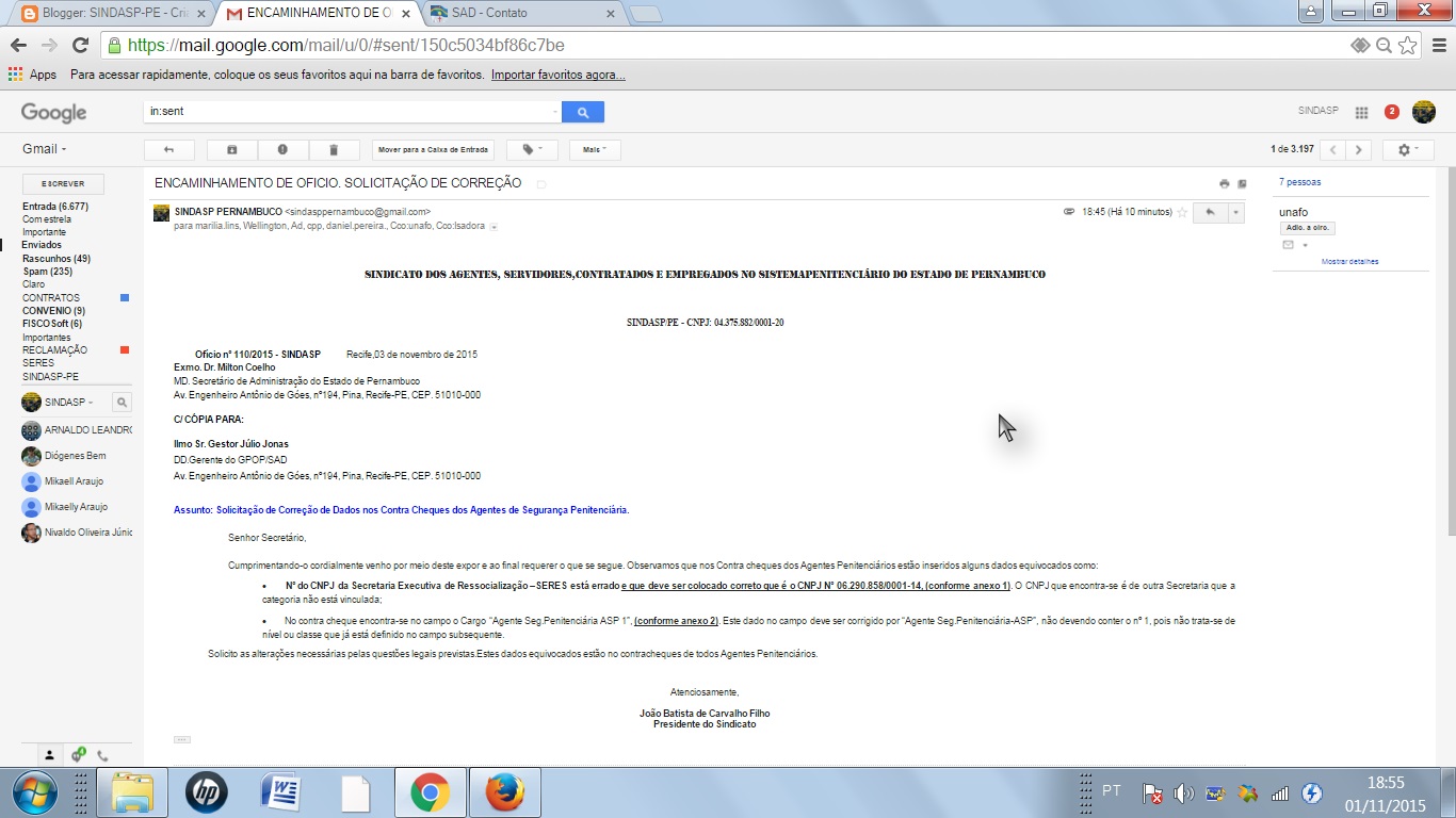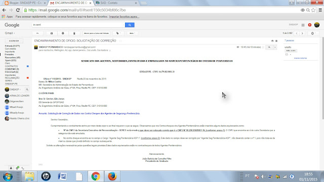 SINDASP-PE SOLICITOU CORREÇÃO NO CONTRA -CHEQUE DOS AGENTES PENITENCIÁRIOS QUE APRESENTAM ALGUMAS INCORREÇÕES DE ERRO MATERIAL